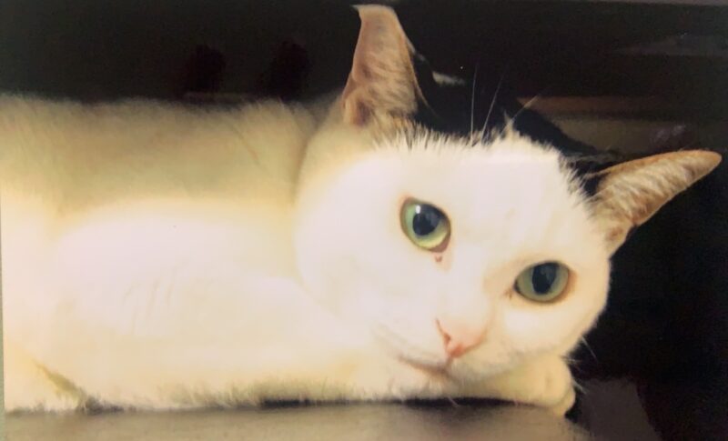 18年前、うちの家の前で鳴いていた小さい赤ちゃん猫。今日も元気です。
